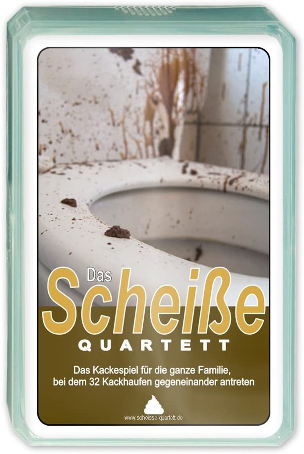 Das Scheiße Quartett | Das Kultspiel für die ganze Familie mit 32 Kackhaufen | Ideal für alle Fans des Fäkalhumors!Unser Angebot für Dich8,99 €Versandkostenfrei Zum AngebotAuf Lager8,99 €Zum Shop Preisvergleich: 1 Angebote gefundenSofort lieferbarOhne RücksendekostenGesamtpreisPreis Ähnliche Produktvergleiche Sammelkartenspiele: Decks & Sets Die besten 5 spielfertig ausgestatteten Magic Decks Standard Spielkarten Die besten 5 Pokerkarten Deckkartenspiele Die besten 5 Uno Spiele Legekartenspiele Die besten 5 Anno Domini Deckkartenspiele Die besten 5 Gesellschaftsspiele Legekartenspiele Die besten 5 Memory Spiele Ähnliche Produkte Kartenspiele Top Trumps Harry Potter Dark Magic Specials Kartenspiel, Spielen mit Voldemort, Bellatrix Lestrange, Barty Crouch Jr und Draco Malfoy, pädagogisch für 2 plus Spieler ist ein tolles Geschenk für Kinder Kartenspiele Matagot SMEE2 – Meeple Circus: Wild Animals & Aerial Show Kartenspiele Copag 22540056 – Plastik Poker, rot, Texas Hold’Em, Spielkarten Kartenspiele Fantasy Flight Games FFGGT20 Game of Thrones LCG 2nd Edition Oberyn’s Revenge Kapitel-Pack, Mehrfarbig Kartenspiele Amigo 02933 – Dragons Kartenspiele Depesche 12394 TOPModel – Quartett Kartenspiel mit Model Motiven, 32 bunte Spielkarten und Spielanleitung, für 2 bis 3 Spieler Kartenspiele Pegasus Spiele 18144E – Castle Rampage (englische Ausgabe) Kartenspiele British Bakes Top Trumps Kartenspiel Kartenspiele Crunchyroll – Spy x Family – 52 Spielkarten – Poker Kartenspiel Deck Playing Cards – original & lizensiert